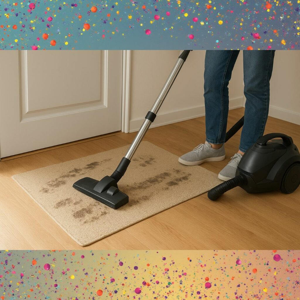 - Saupoudre le tapis de bicarbonate, laisse agir 1 h puis aspire.