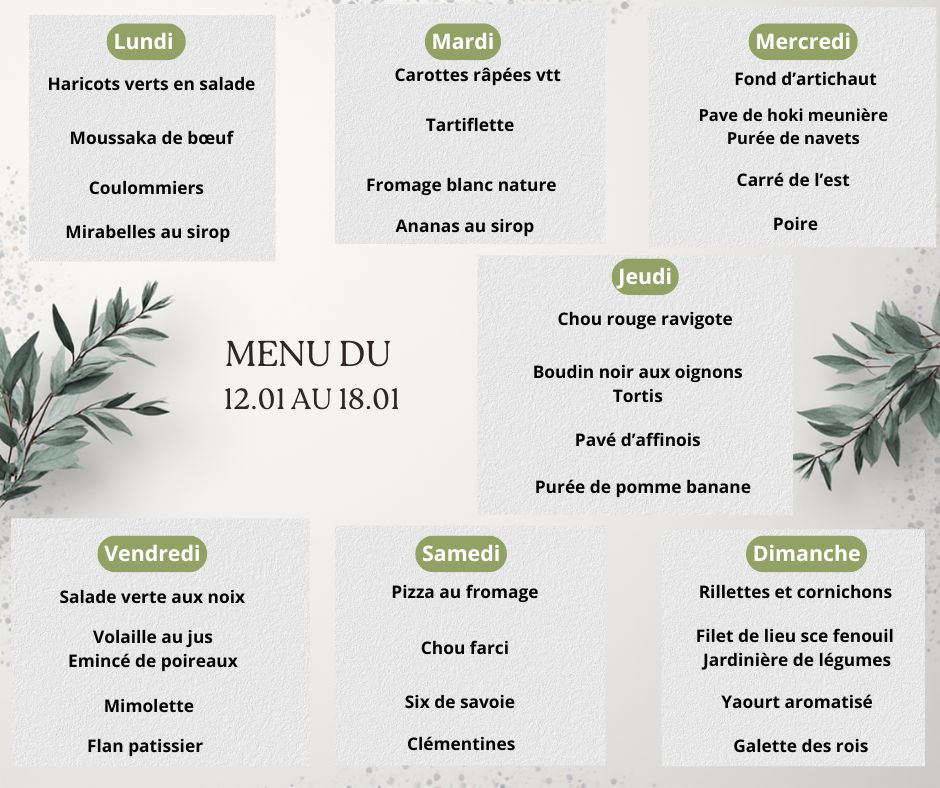 Pour bien démarrer l’année, notre équipe de diététiciennes vous propose une semaine placée sous le signe de la fraîcheur hivernale. Découvrez des menus équilibrés du 12 au 18 janvier 2026, pensés pour votre bien-être nutritionnel. Ainsi que la carte du moment, généreuse en saveurs réconfortantes… et un article dédié aux fruits et légumes de janvier.